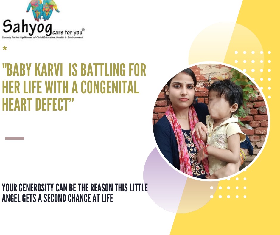 Baby Karvi (DOB: 08-12-2022) is battling for her life with a congenital heart defect. She is under the care of Dr. Deepak Thakur at Fortis, Manesar...
